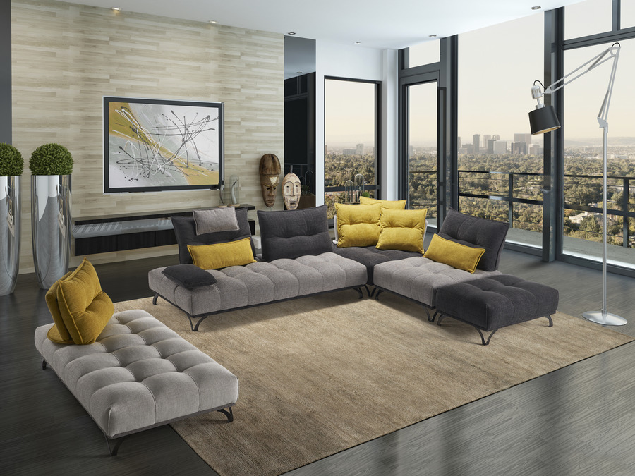 Modello con sviluppo modulare realizzabile in varie misure; sia in versione lineare che con le versioni componibili disponibili con o senza braccioli. E’ possibile scegliere il proprio modello con le spalliere con movimento di traslazione per poter aumentare la profondità della seduta o con spalliere mobili. Sedili in poliuretano trapuntati, disponibili con rivestimento in vari tessuti o pelle.